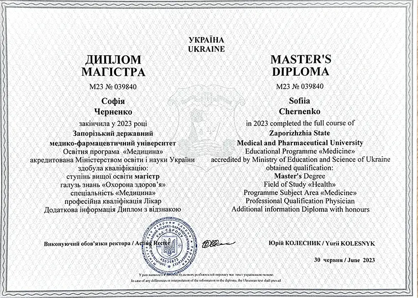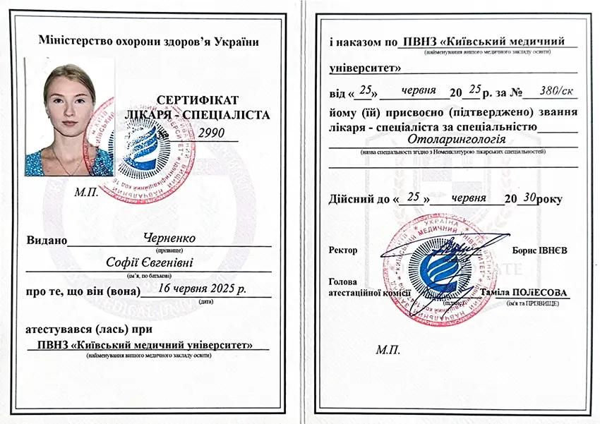 Софія Євгенівна Черненко – дипломований дорослий та дитячий ЛОР-лікар (Київ).