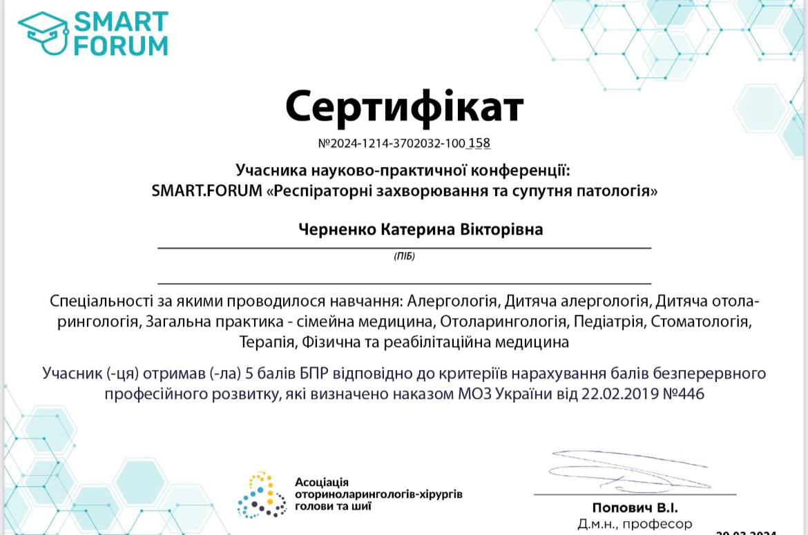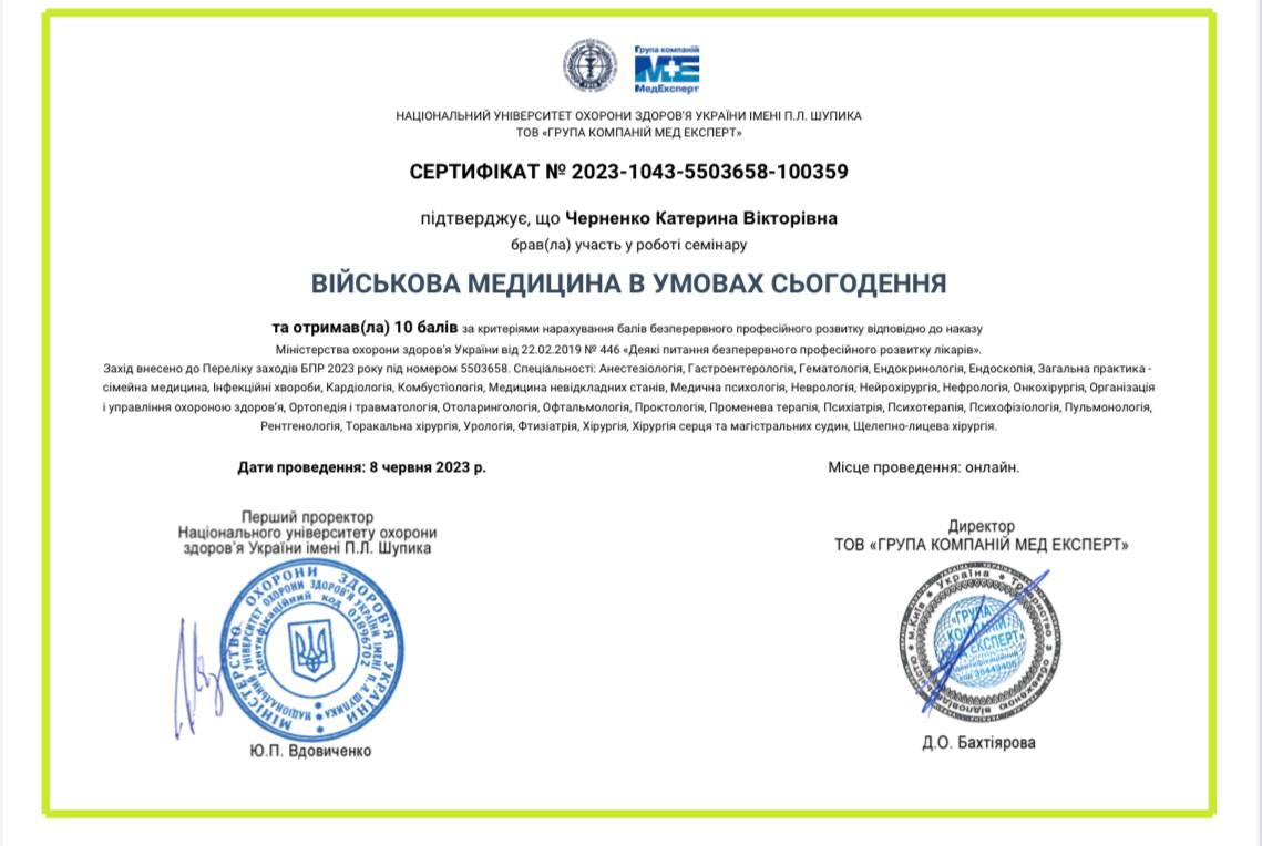 2024 – Національна медична академія післядипломної освіти ім. П.Л. Шупика, Київ
