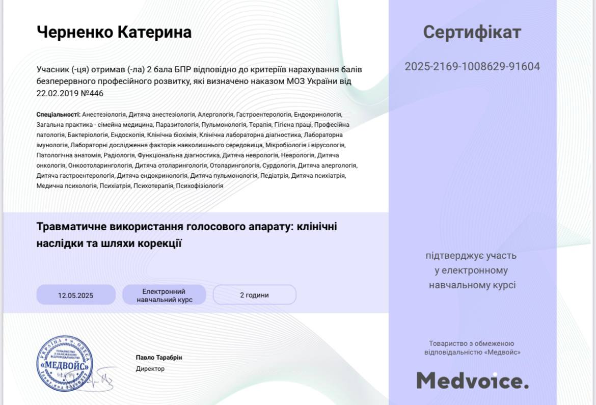 Майстер-клас “Травматичне використання голосового апарату: клінічні наслідки та шляхи корекції”.