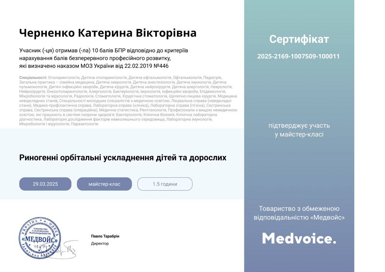 Майстер-клас “Риногенні орбітальні ускладнення дітей та дорослих”.