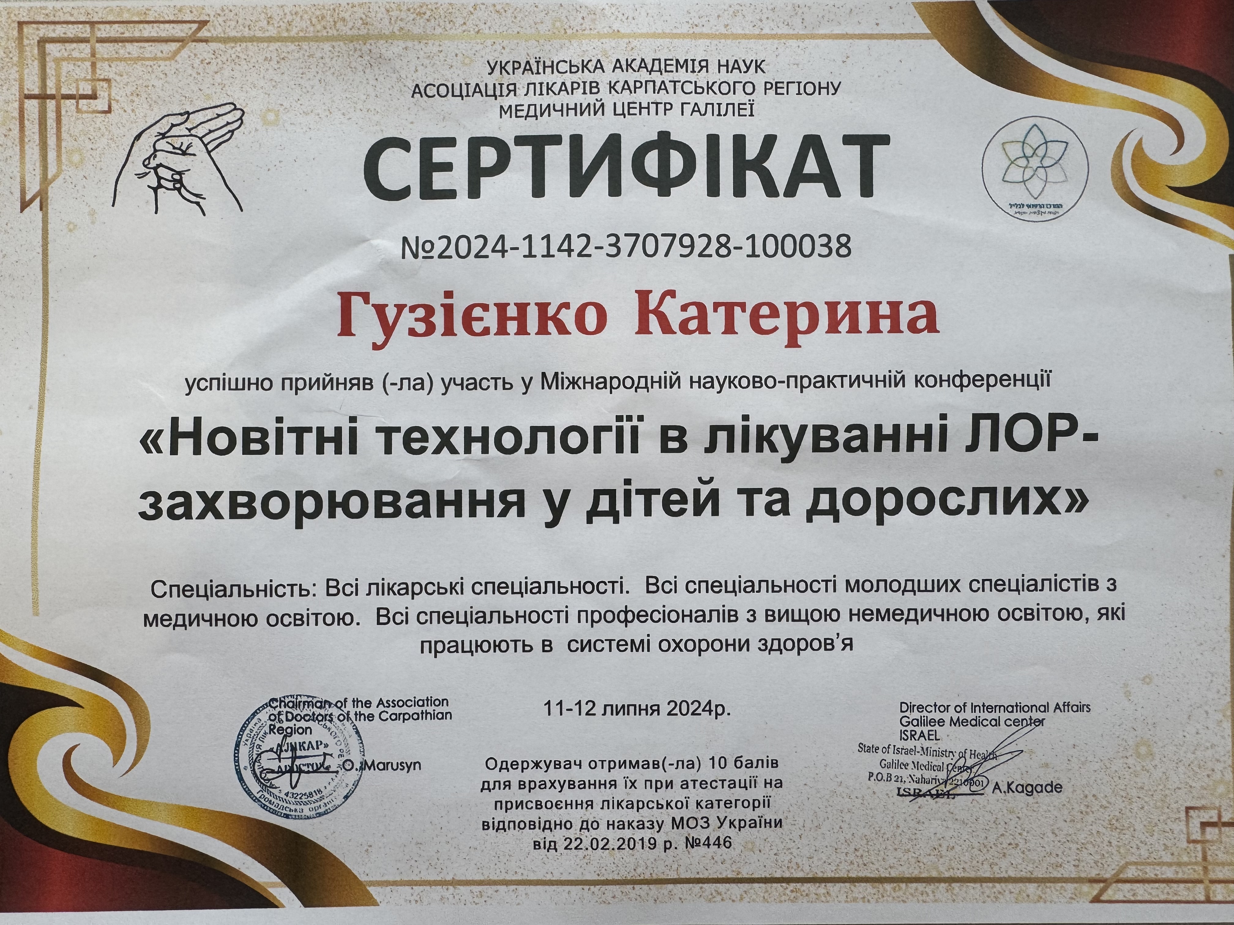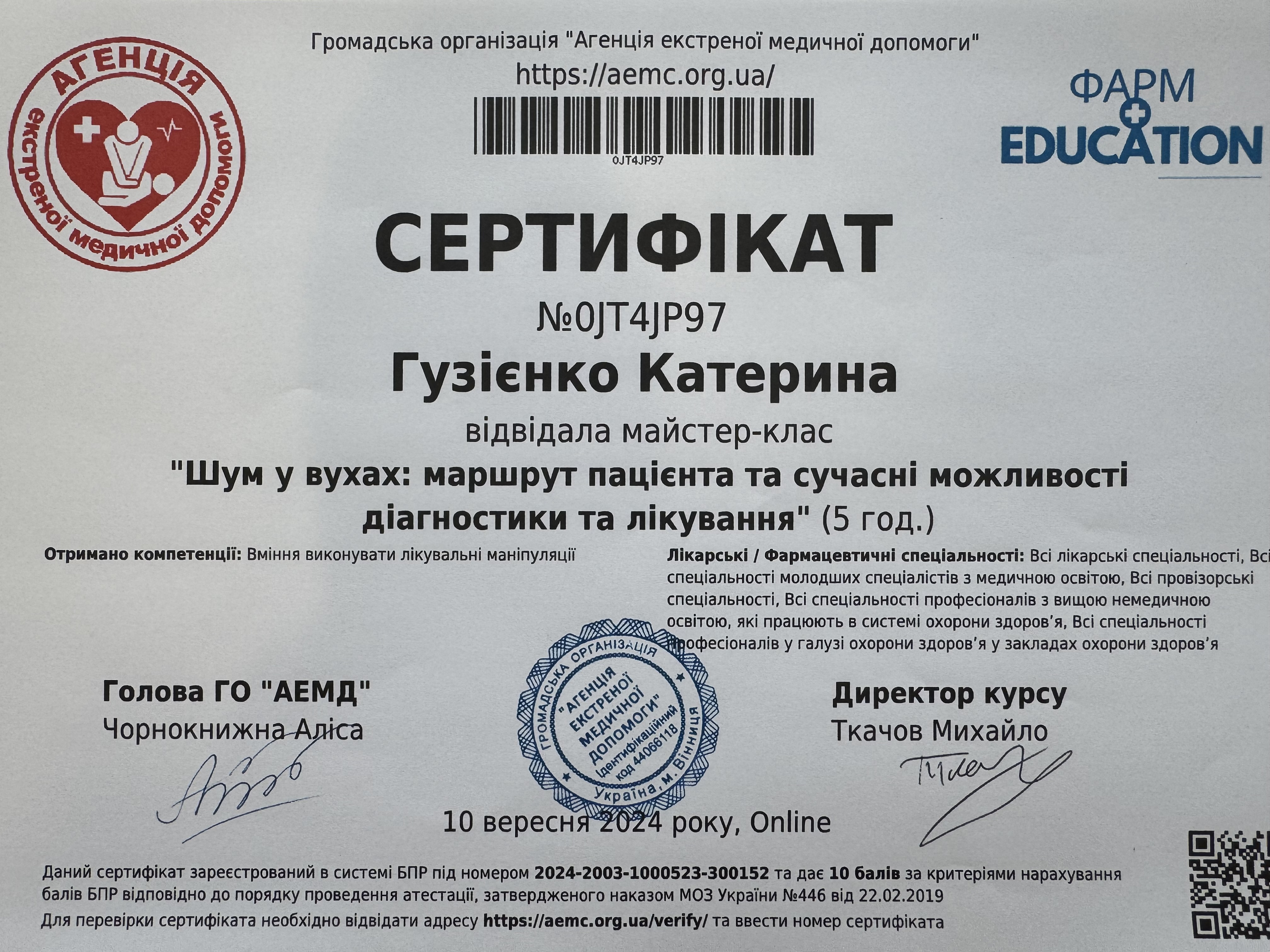2024 — НМАПО ім. П. Л. Шупика, курс спеціалізації «Сурдологія».