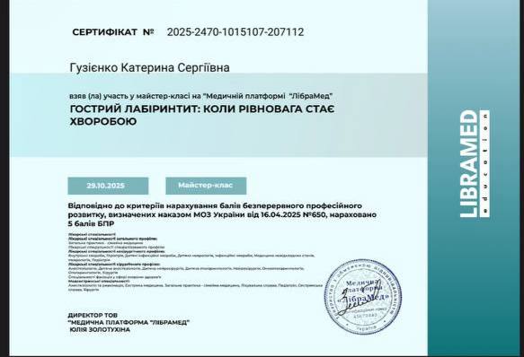29.10.2025 — майстер‑клас “Гострий лабіринтит: коли рівновага стає хворобою”.
