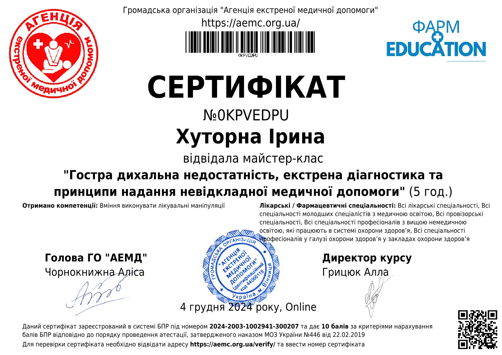 04.12.2024 ГО «Агенція екстреної медичної допомоги» спільно з Farm Education Майстер-клас «Гостра дихальна недостатність, екстрена діагностика та принципи надання невідкладної медичної допомоги» (5 годин)